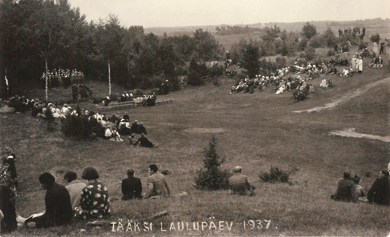 Varem Olustvere Papiorus asunud vallakeskus koliti 1913. aastast Tääksis valminud vallamajja. Toima talus 1868. aastal tegevust alustanud külakool kolis 1875. aastal Tillu Reinu talu maadel valminud koolimajja. Praegune koolimaja ehitati 1931. aastaks. Tääksis tegutses (enne 1940. aastat) jahu- ja saeveski, 1907 avatud Peet Aua kauplus, 1913 asutatud Olustvere Tääksi vabatahtlik tuletõrje selts, 1914. aastal asutatud Olustvere Kaubatarvitajate Ühisus oma kauplusega, 1923. aastal tegutsemist alustanud Olustvere Tääksi piimahüisus koos meiereiga (meier Konstantin Kolumbus võitis 1930. aastal piimatööstuse auhindu) ja rida teisi seltsie ja ühinguid. tegutsenud Olustvere Ühispank.